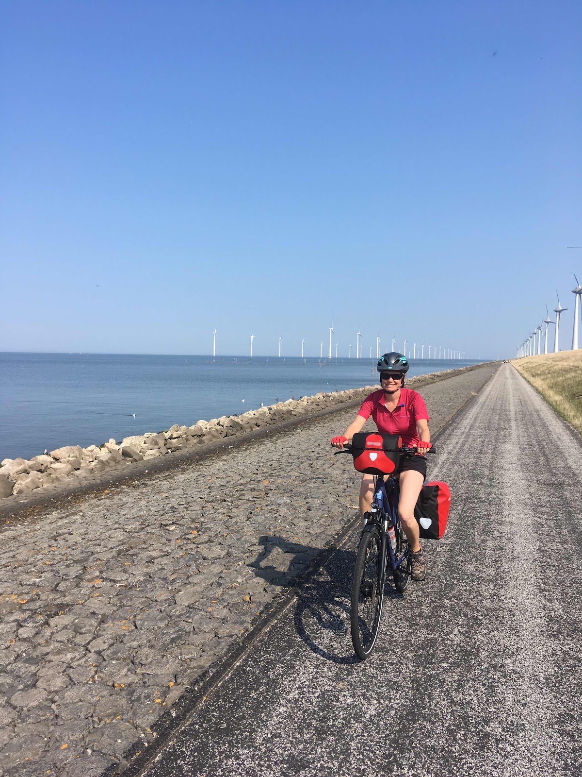 On one straight section, the cycle path seemed to vanish in to the haze of the heat and without points of reference it was hard to tell if we were making any progress, until we got to a section of wind turbines.