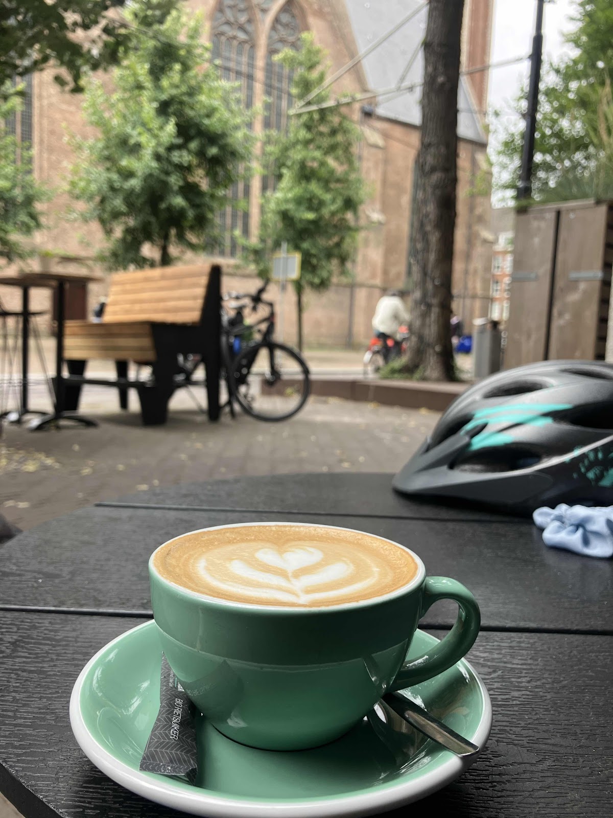 With the coast being buffeted by strong winds, and rain on and off, we changed our plans and followed signs to the centre of The Hauge, where we found refuge in the form of a coffee shop by a church.