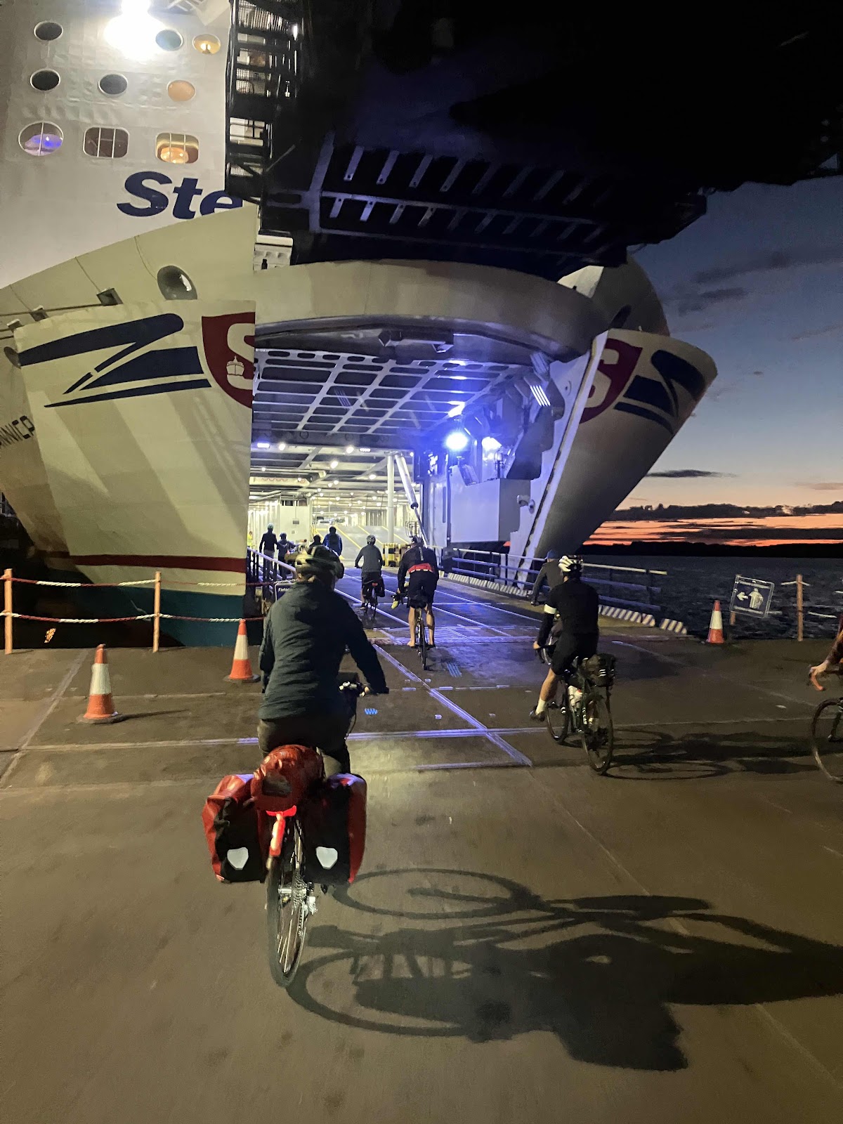 Made it aboard the delayed ferry in the last of the light after a long wait in the queue! Luckily, we had a warm jacket and an audiobook to keep us entertained.